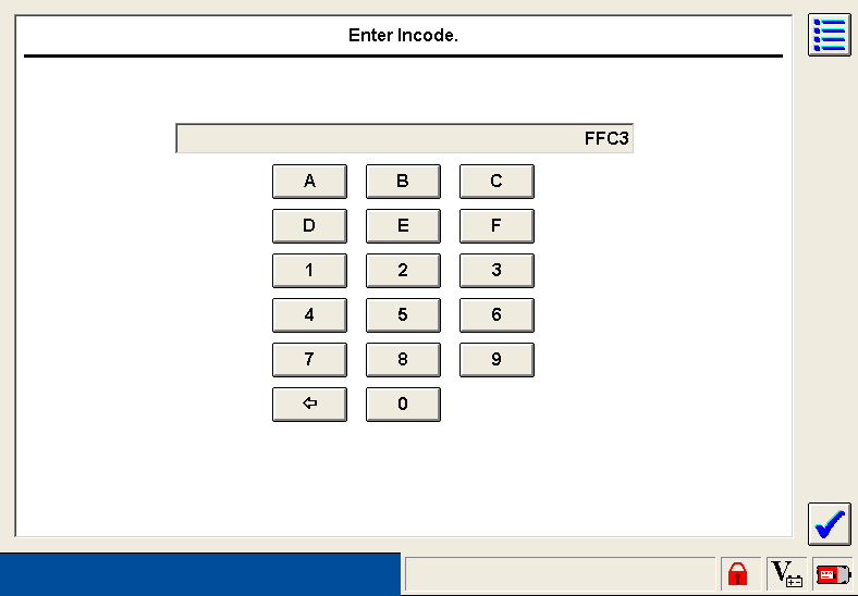 Bij toegang tot codering ziet u een venster waarin om OUTCODE/INCODE wordt gevraagd.